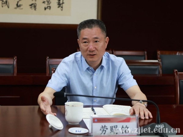 劳赐铭对江苏商贸职业学院一行来校表示欢迎,简要介绍了学校办学情况。重点介绍了学校办学思路、产教融合模式、专业建设特色等方面的情况。他表示,江苏商贸职业学院作为全国供销合作社示范性高等职业院校和江苏省中国特色高水平高职学校建设单位,在人才培养、队伍建设、产教融合等方面成果丰硕。两校同为供销行业院校,交流合作基础良好,办学专业相近且各具特色,希望双方立足供销行业和双方专业特色优势,聚焦职业教育五大职能和供销行业“三位一体”改革,加强协同创新,深化交流合作,共同推进供销行业职业院校高质量发展。