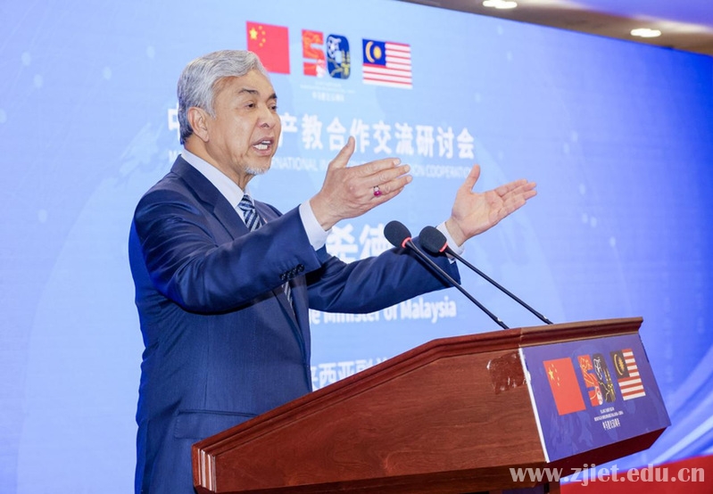 会议期间,马来西亚副总理扎希德发表重要讲话。他表示,马来西亚高度重视与中国开展职业教育合作,中国在汽车技术、智能制造、电子商务等8个产业及相关领域具有较强的职业教育优势,马方将引进中国高质量的职业教育体系,助力马来西亚培养更多复合型技术技能人才,提升马方青年的就业竞争力。他指出,未来马来西亚政府将输送更多的马来西亚技能人才来中国学习职业技能,进行“就业前培训”,期待与各方携手尽快落实中马双学历合作办学项目。