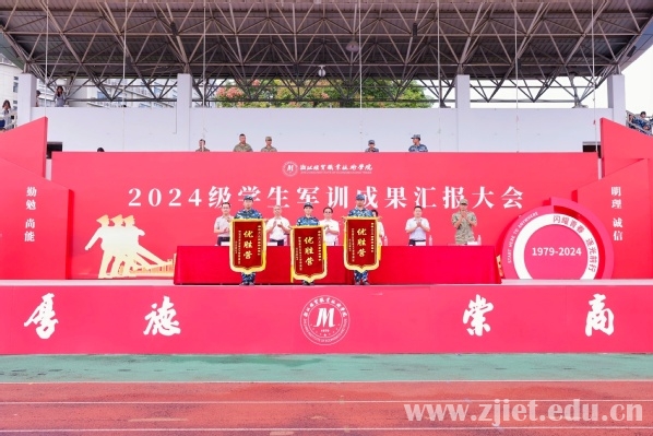 9月27日下午,我校2024级学生军训成果汇报大会在田径场举行。学校党委副书记许宝峰,党委委员、副校长蒋丽君、何学军,党委委员、纪委书记吴刚群,党委委员、组织部(人才办)部长(主任)、宣传统战部部长邱雷鸣,94973部队管理科国防动员参谋、军训团团长王云飞出席大会。全体中层干部、辅导员、新生班班主任和全体新生参加大会,大会由何学军主持。