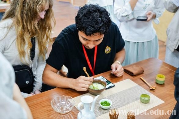 在非遗体验环节,美国青年领略了“宋代点茶”“中国书法”“古法制扇”及“中国功夫”等传统技艺,亲身体验了茶上作画、竹篾制扇、毛笔书法及功夫练习。