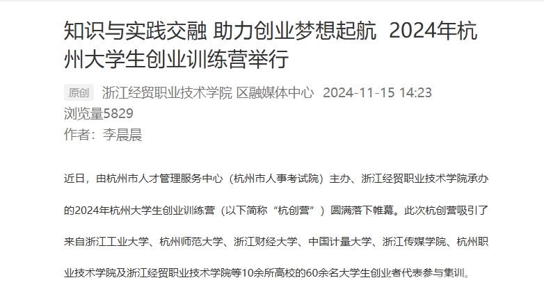相信经过此次杭创营的洗礼,这些怀揣创业梦想的大学生们将在未来的创业道路上绽放出更加绚烂的光彩,为推动创新创业事业发展贡献出属于自己的力量。