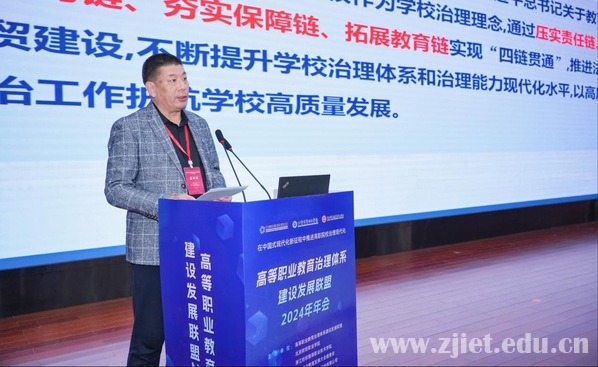 11月30日-12月1日,高等职业教育治理体系建设发展联盟(以下简称“联盟”)2024年年会在浙江宁波召开,来自全国的高职院校、企业代表及相关教育专家200余人出席会议。校长陈德泉受邀参会并作交流发言。
