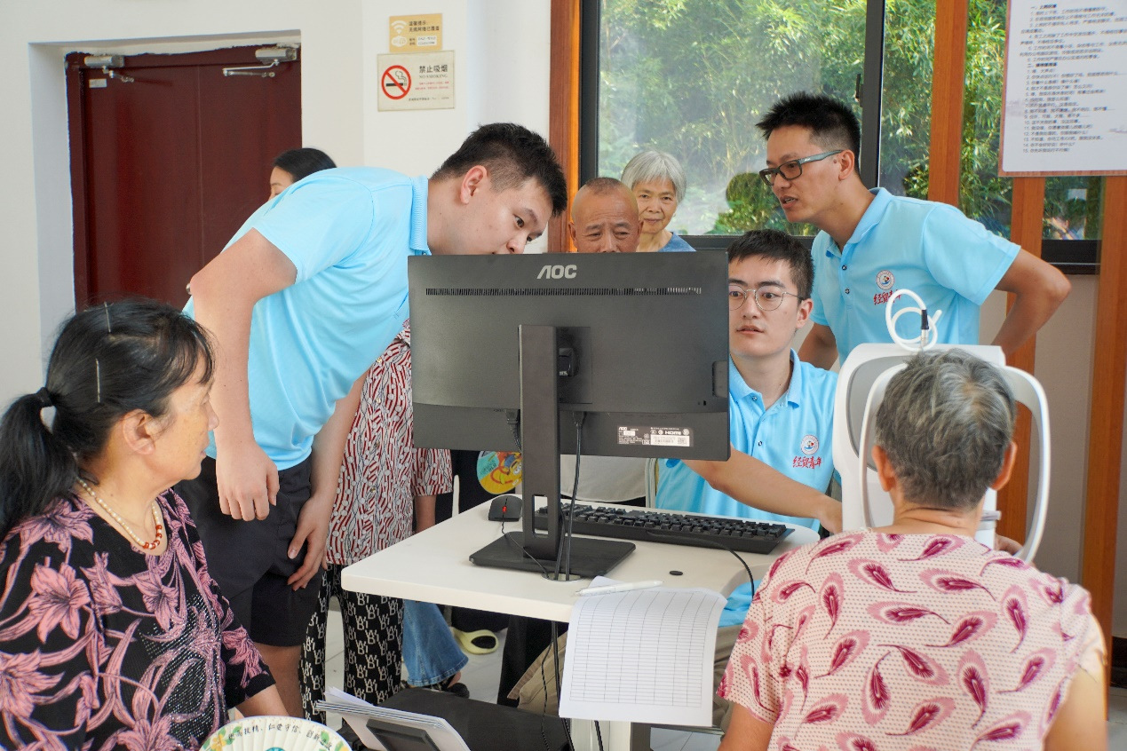 志愿者服务团队联合淳安县枫树岭镇新时代文明实践所共同开展了“栀馨暖阳”健康关怀活动,依托杭州电子科技大学计算机学院自主智算与数字诊疗系统实验室的AI眼底筛查技术,为50余位老人筑起护眼屏障,让科技关怀更接地气。